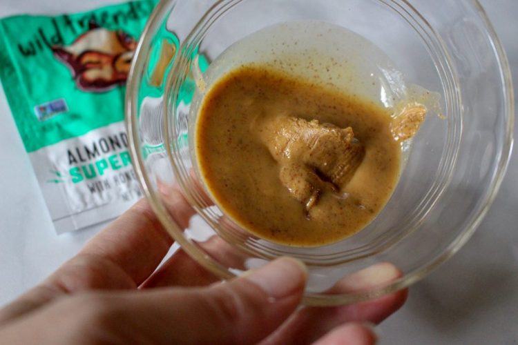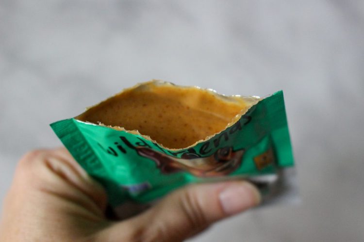 Wild Friends Almond Cashew Super Butter contains almonds and cashews that are double roasted and then ground with the chia and flax. I’ve mixed chia and flax into nut butters at home but I’ve never liked the chunks of chia and flax that can get stuck in my teeth. My immediate reaction when I opened the pouch was, “Oh wow, I won’t have to mirror check my teeth after this.” Lol – true story! Beyond t  he initial smooth consistency, I was a bit disappointed that although I kneaded the packet quite a bit, there was still a considerable amount of oily top and then more solid nut butter at the bottom. You can see what I’m talking about in the image below. Maybe I ended up with a packet that had been sitting for awhile, but it didn’t see different than the rest of the packets I have.